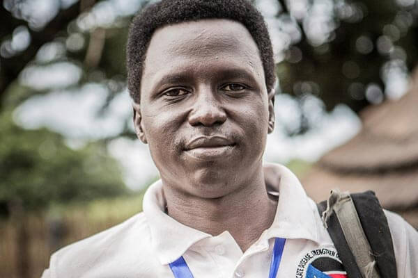 Daniel Deng Madit Kuchlong, a health agent with South Sudan’s Guinea Worm Eradication Program, does not want Guinea worm to hurt other families the way it hurt his.