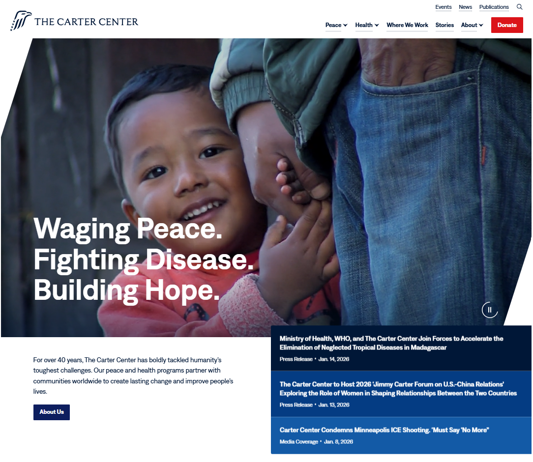 Your support sustains the Carter Center's mission of waging peace, fighting disease, and building hope around the world.