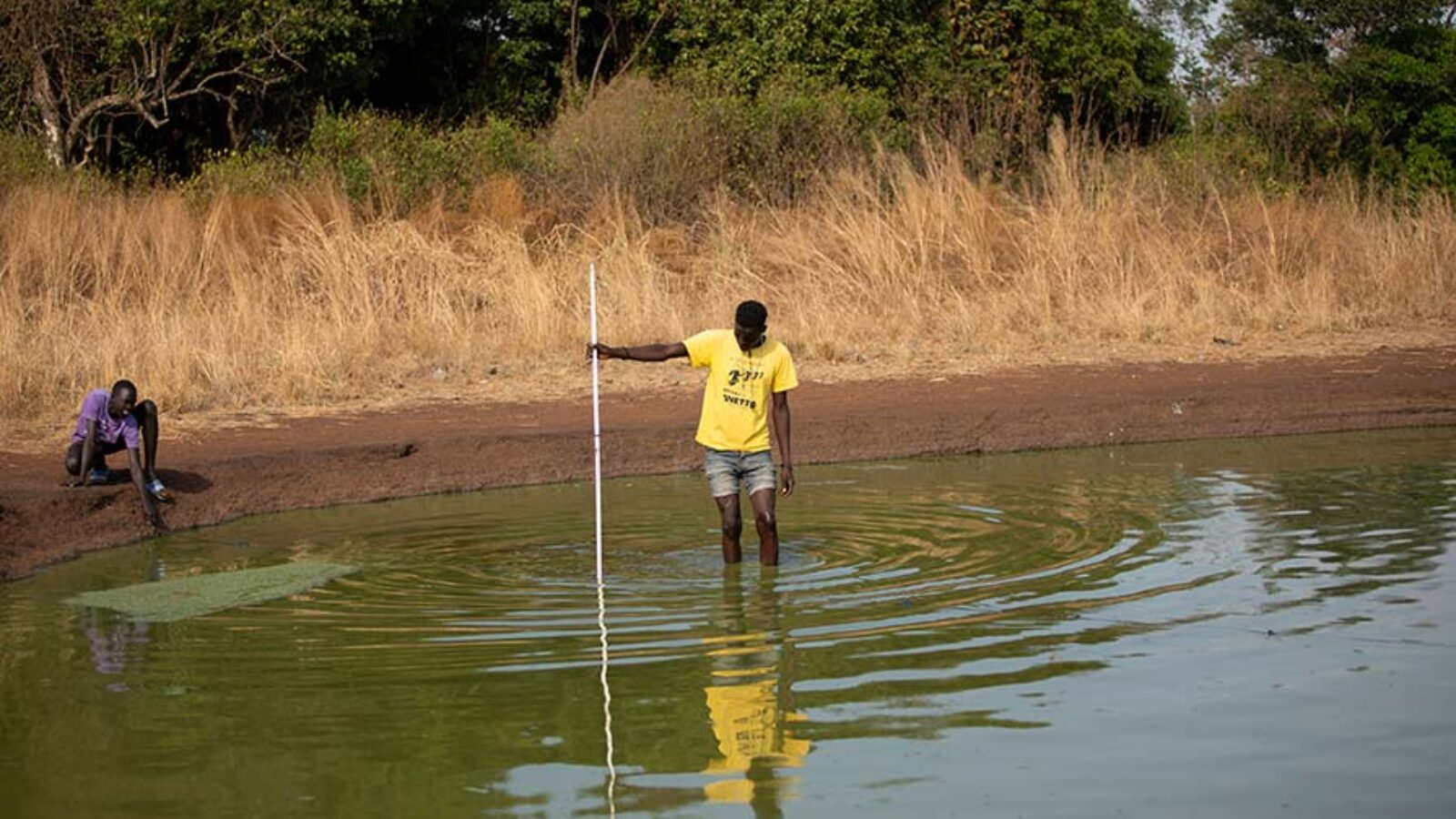 On a cloudy morning, 15 young men gather at the Carter Center’s Guinea worm compound in Gog. Their job is to ensure every pond and well around the villages of Ablen, Wichini, and Atheti is treated every 28 days with Abate® larvicide to help interrupt the worm’s life cycle, which depends on still water.