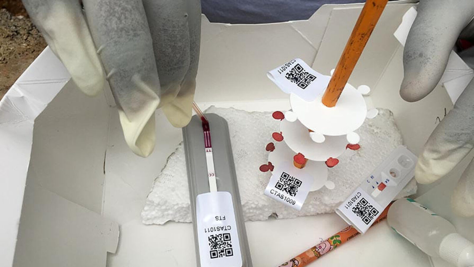Now, after five years of treatment, the population is being tested to see if parasite transmission has been interrupted and if treatment can be stopped. According to World Health Organization guidelines, children between the ages of 6 and 7 are targeted for testing because they should be free of infection if the drugs were successful in blocking transmission within their communities. Survey teams are also testing for evidence of malaria, which can be fatal if not treated promptly — a particular concern for remote communities like Chan Bon.