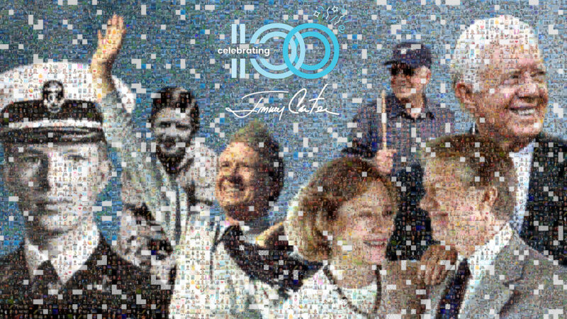 More than 9,000 admirers from all over the United States and 81 countries submitted photos and videos to create a mosaic for President Carter’s 100th birthday.
