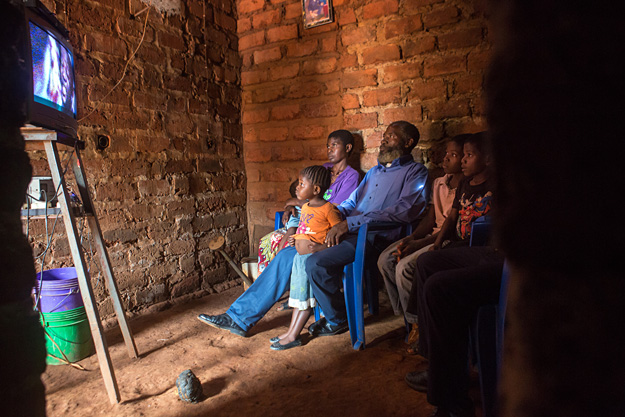 Kabwita and his family watch television in their house in Lubumbashi, capital of the mining province Katanga in the Democractic Republic of the Congo. (Photo: The Carter Center/G. Dubourthoumieu)