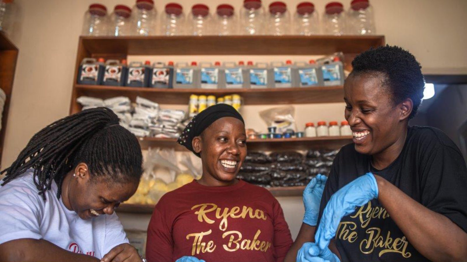 Petralina Babirye’s (far right) bakery in Uganda grew with the support of a local program for women entrepreneurs.